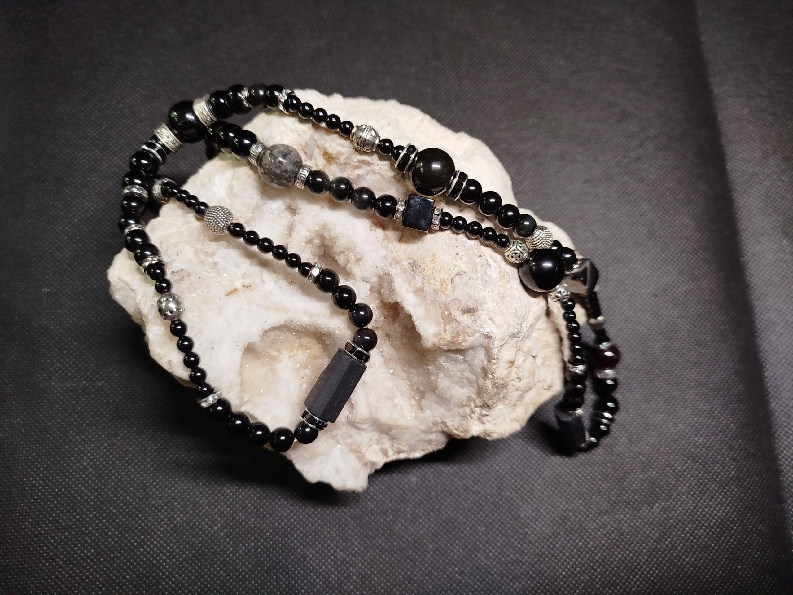Collier Malachite et Spinelle noire