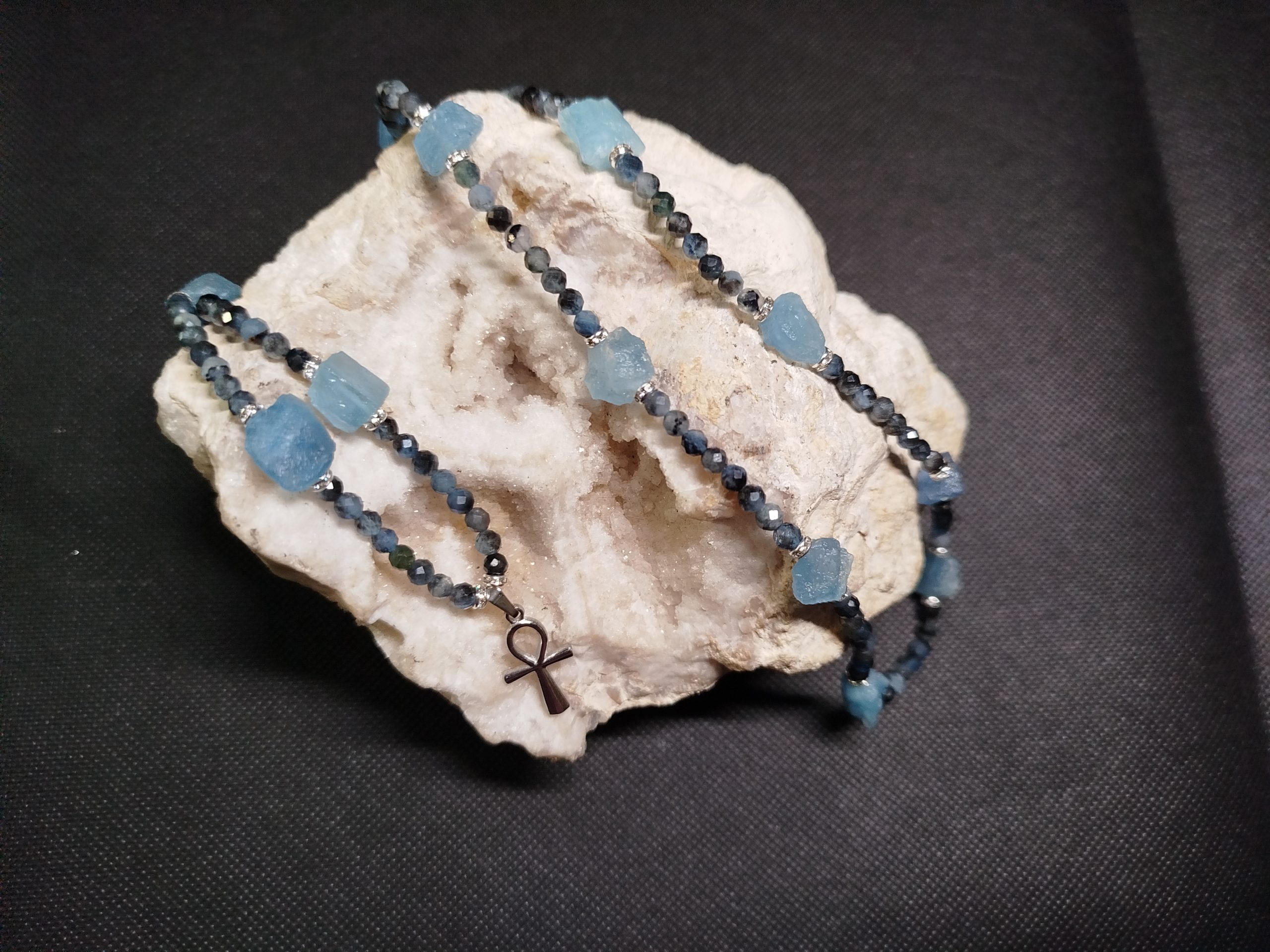 Collier Oeil de tigre et Pierre de lave croix d’Ankh