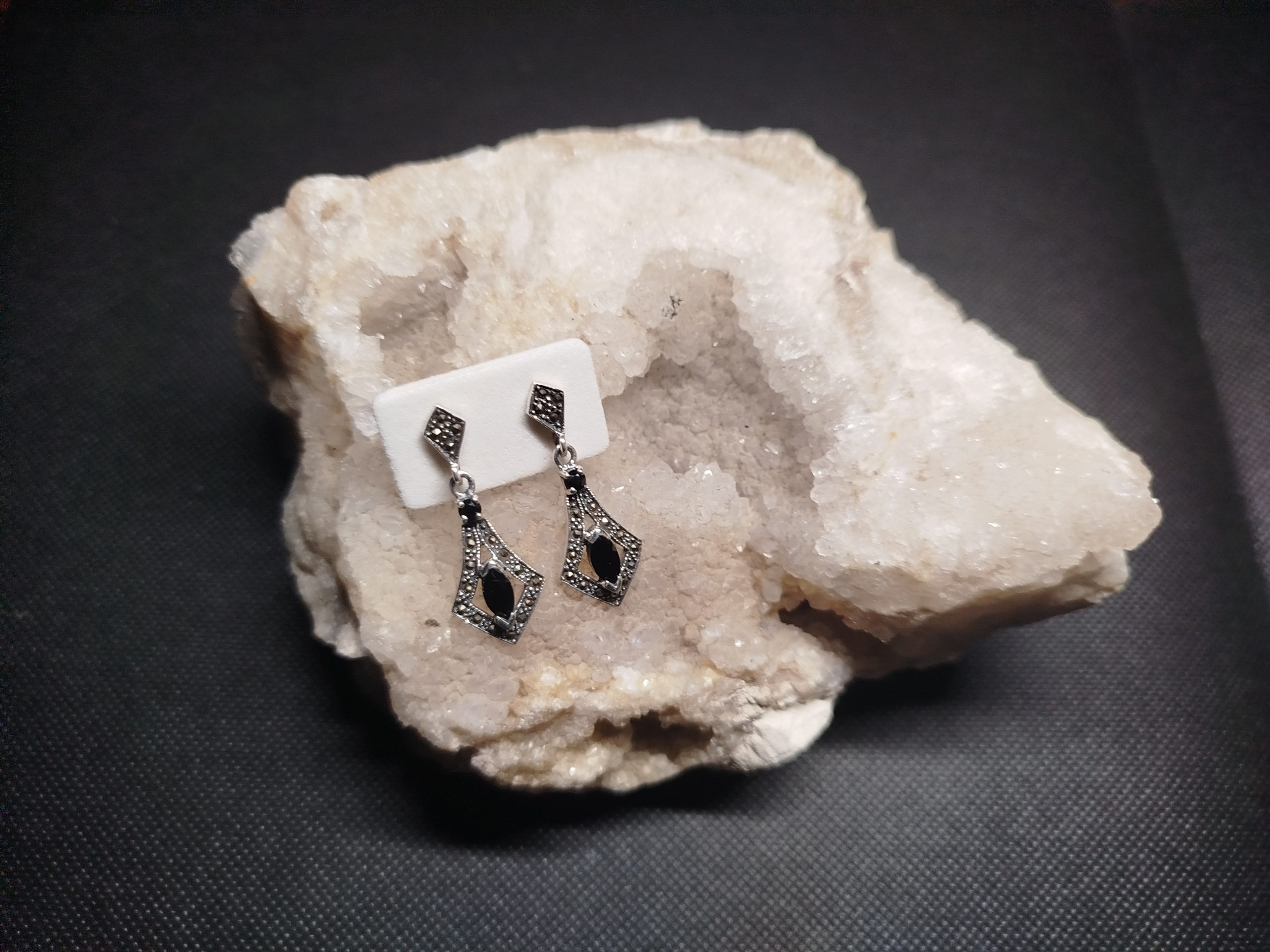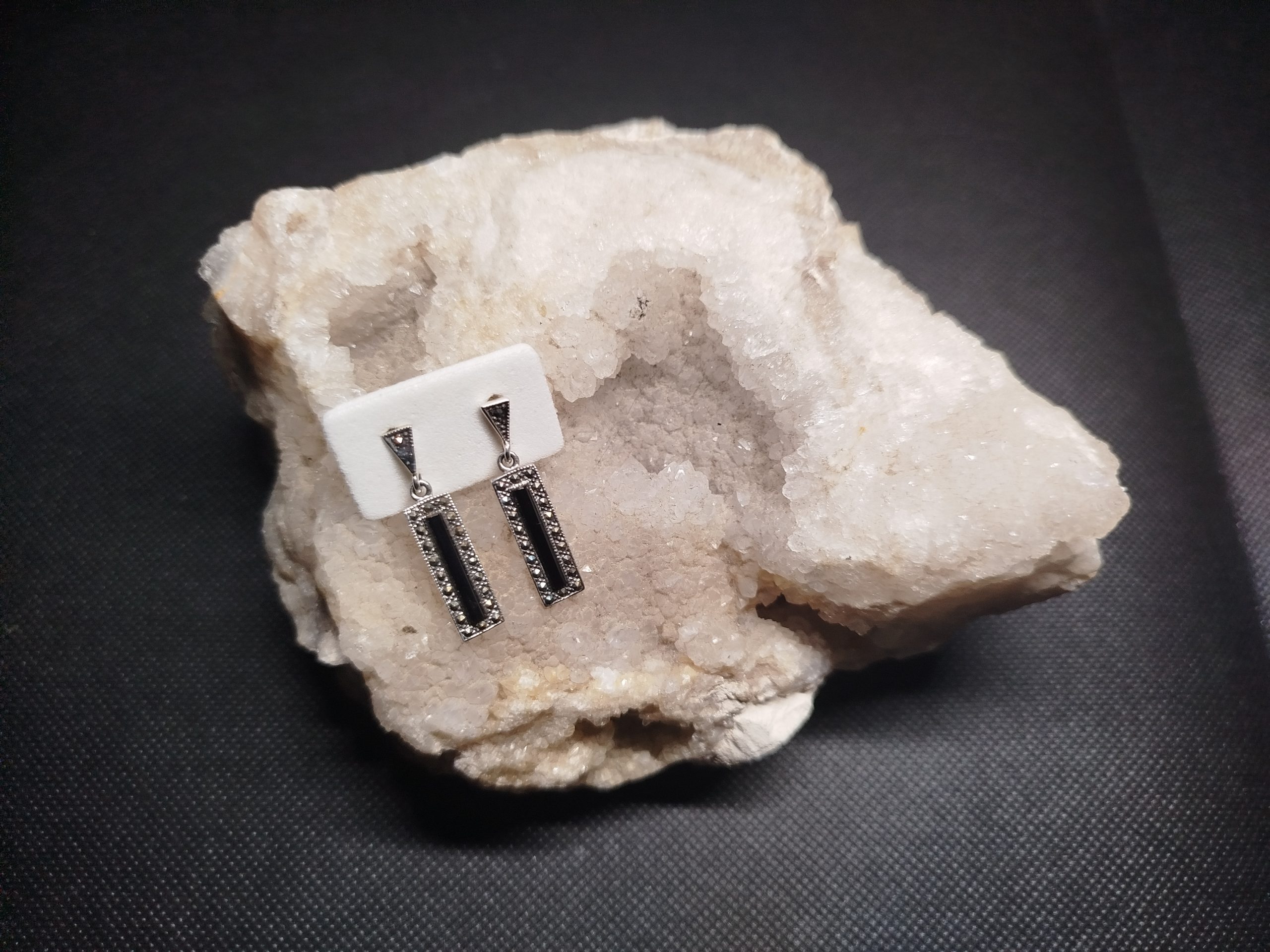 Boucles d’oreilles Onyx et Marcassite – argent 925