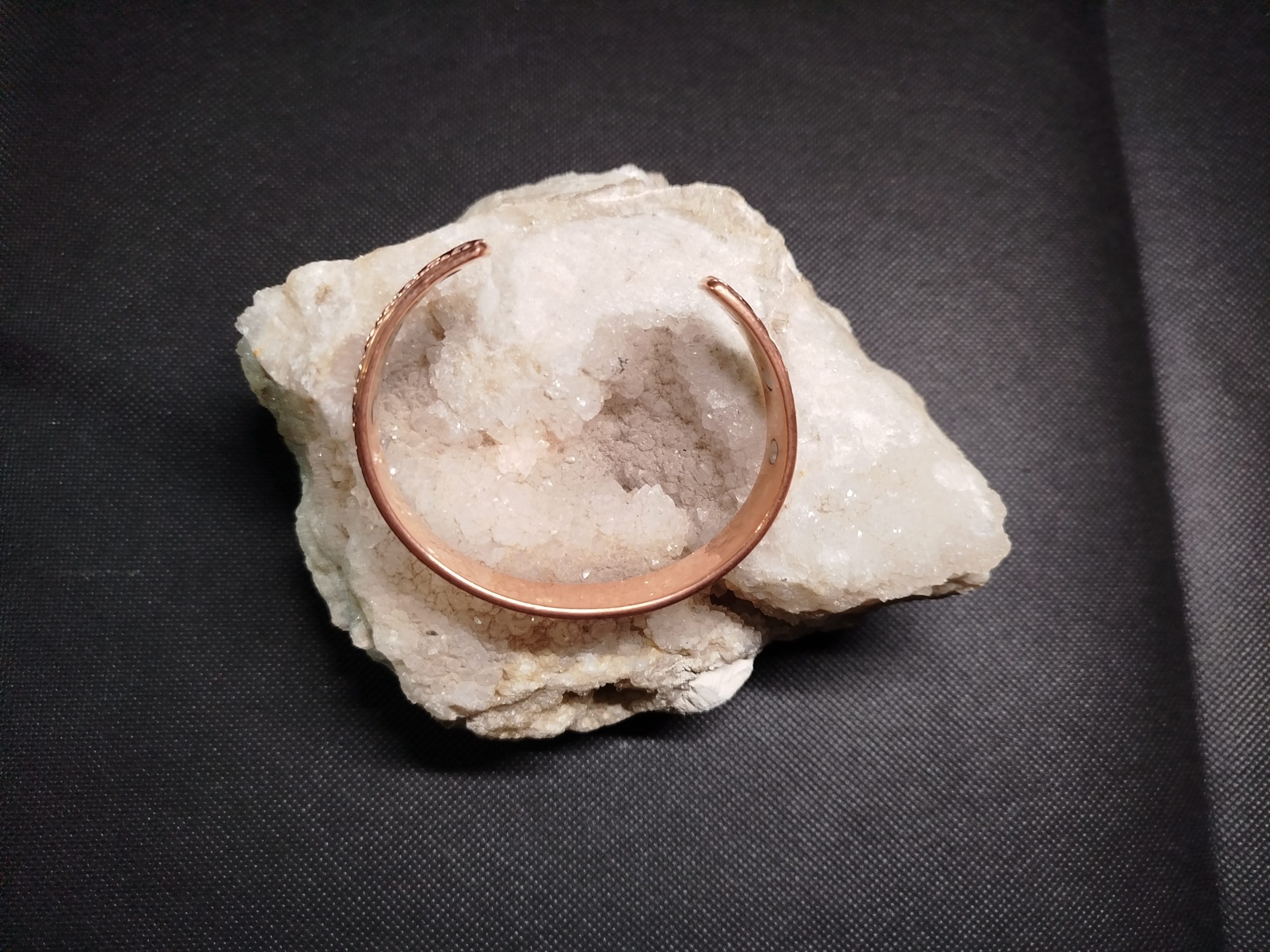 Ce bracelet est composé de cuivre et de petits aimants placés à ses extrémités. En effet, depuis la nuit des temps, le cuivre et les aimants sont reconnus pour leurs bienfaits. Ainsi, ils aident à soulager les symptômes liés à l’arthrite et aux rhumatismes.