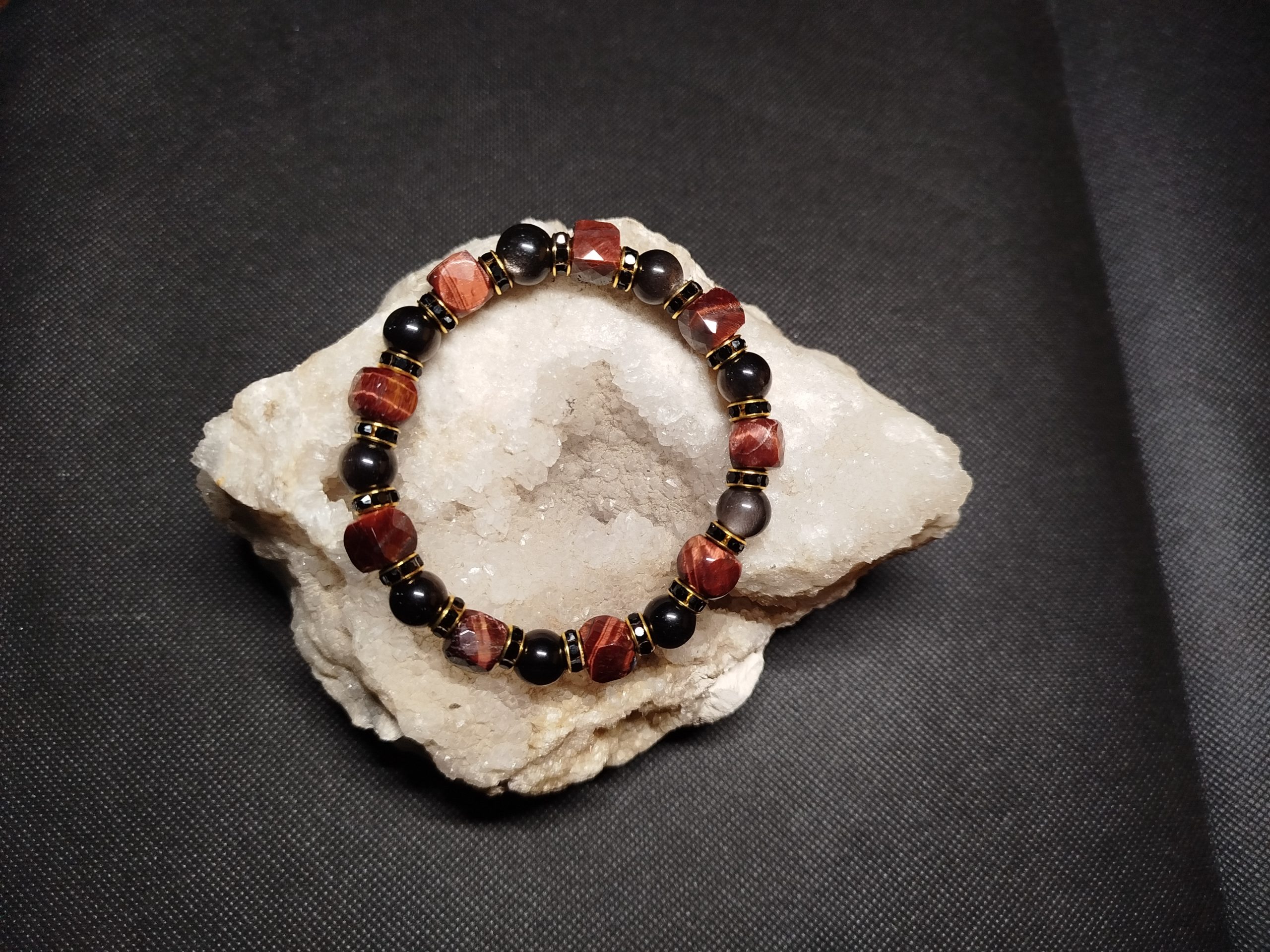 Bracelet Oeil de taureau et Obsidienne